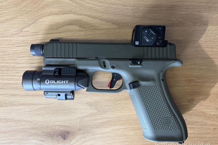 Glock 45 Hunter Edition mit Aimpoint COA, Timney Alpha Trigger und Olight Baldr Pro