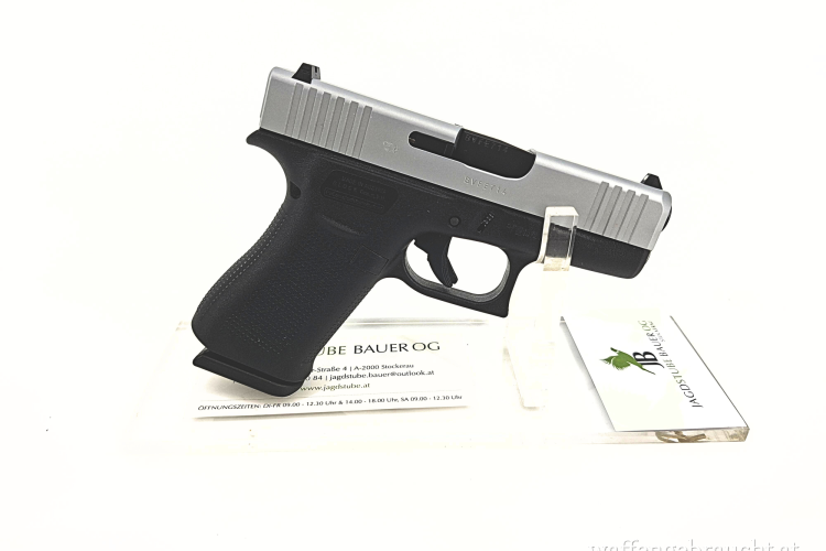 Die Glock G43X mit silbernem Schlitten war das ursprüngliche Design bei der Markteinführung dieses Modells im Jahr 2019. Während neuere Standardversionen der G43X mittlerweile fast ausschließlich mit einem schwarzen Finish ausgeliefert werden, bleibt die silberne Variante aufgrund ihrer markanten Zweifarben-Optik ein beliebtes Sammler- und Gebrauchsstück.