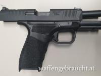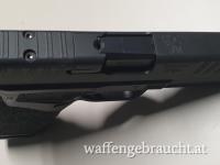 Der Schlitten hat eine vordere und hintere Verzahnung zur leichteren Handhabung und ist mit einem Fiberoptik-Visier und einer U-förmigen Kimme ausgestattet. Sie verfügt über zwei Sicherungen (Abzugssicherung / Schlagbolzensicherung) und eine Ladekammeranzeige für zusätzliche Sicherheit.
