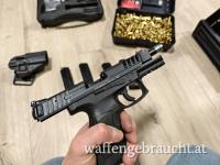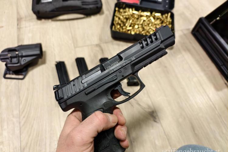Dazu gebe ich einige 100 Schuss Munition, 2 Original Magazine, Verschiedene Griffstücke, Koffer, Anleitung, Servicekit, einen Holster sowie 2 Lange Magazine.