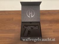 Das einzigartige Design des H9 ist nicht nur ästhetisch. Das unkonventionelle Mündungsprofil der Pistole ermöglicht es, dass Lauf- und Rückstoßfeder drastisch niedriger und näher an der Hand liegt als bei herkömmlichen Designs. Dies, gepaart mit hahnlosen Design, erzeugt eine extrem niedrige Laufachse, die das Drehmoment um das Handgelenk beim Schießen reduziert und zu einer beispiellosen Präzision im Schussprozess beiträgt.