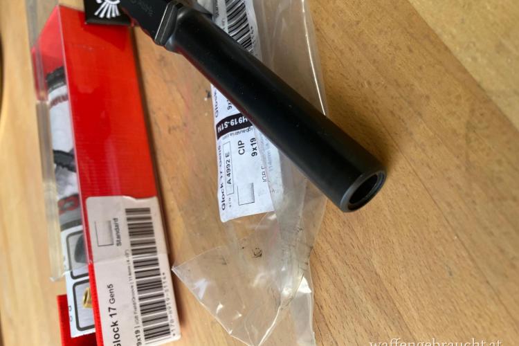 Wechsellauf für Glock 17 Gen 5, Kaliber 9x19, hexagonal Zug-/Feld-Profil, kein Gewinde, schwarz, mit C.I.P. Beschuss, Neupreis 303 Euro.