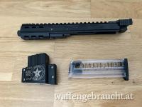 Verkaufe neuwertige (200 Schuss) Keltec CP33. Mit dabei sind 2x 33-Schussmagazine (Kat.B, da .22lr), eine perfekt funktionierende Ladehilfe für die Quad-Stack-Magazine und ein aus den USA importierter Schubschaft (Farrowtech); Gesamtlänge auch mit ausgefahrenem Schubschaft <60cm.