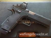 Hat keine internen Modifikationen bis auf eine neue Abzugsfeder und die andere Sicherung (original liegt bei). Ehrliche Schussbelastung knapp unter 8000. Zustand TipTop, nur die Mags haben leichte Verschleißspuren und die Griffschalen an der Unterkante von versemmelten Magazinwechsel.