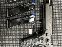 Pistole ausgestattet mit KMR-Zubehör und dem BRS-Laufstabilisierungssystem – ideal für das Sportschießen/ Scheibenschießen.