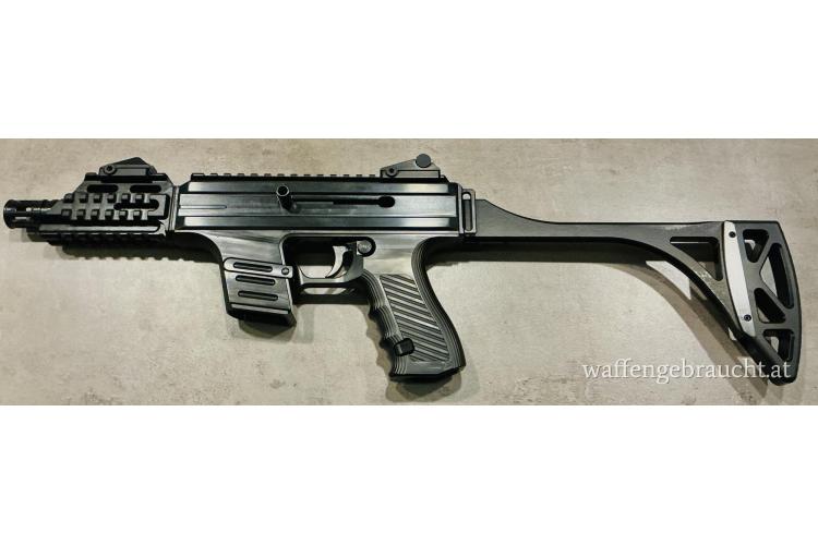 Pistolenkarabiner (PCC) mit Stahlgehäuse und Klappschaft (kann auch auf AR Schaft umgerüstet werden). Sehr führig und spaßig im Gebrauch.