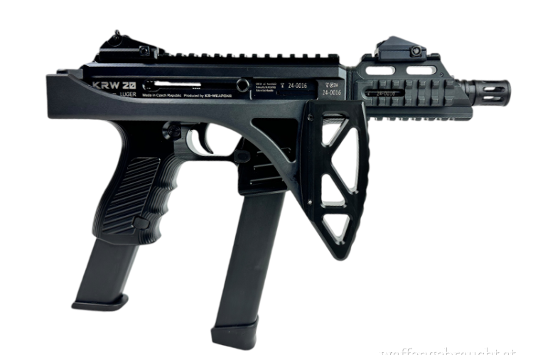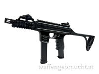 Sehr schön gefertigte halbautomatische Pistole/Selbstladegewehr mit einem aus dem vollen gefrästen Stahlgehäuse, so wie es früher einmal war . (Unseren Wissens nach, die Einzige!) Kompatibel mit Glock Magazinen. Ausgestattet mit einem Quadrailvorderschaft, Klappschaft und beidseitig bedienbarer Sicherung. Der Ladehebel kann links oder rechts der Waffe angebracht werden. Des weiteren besteht die Möglichkeit ein Reservemagazin im Griffstück anzubringen.