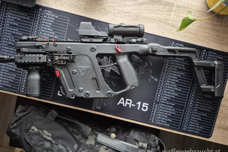 Die Kriss ist eine Ideale PCC Waffe im Günstigen Kaliber 9x19, welche sehr sehr angenehm zu Schießen, da der Masseverschluss nicht wie bei den meisten AR oder dergleichen nach hinten fährt, Sondern nach Unten!!