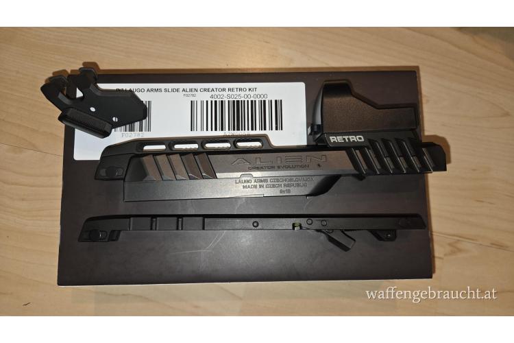 Verkaufe Laugo Limited Optics Kit ohne Optik. Passt für die alte und die neue Alien. Hohe Schiene für die Montage der Daumenauflage und niedrige Schiene des Retro Kits. Ideal für die neue Optics Division.