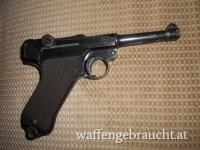 Sehr gut erhaltene Luger 08 mit einem nummerngleichen Magazin und der dazu passenden Tragetasche. Die rund 108 Jahrealte Waffe schieß noch ausgezeichnet. Ohne Holster 1300.- Der Preis ist in Grenzen verhandelbar.