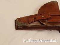 M 35 Browning High Power - Gendarmerie Pistolentasche samt Trageplatte, braun Leder