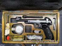 Die Margolin ist eine zuverlässige halbautomatische Ganzstahl- Präzisionspistole in guter und altbewährter russischer Qualitätsarbeit.Ein Nummerngleiches Magazin, Lauflänge: 150 mm, brünierte Ganzstahlwaffe, höhen- und seitenverstellbares Visier, Triggerstop, schwarze Kunststoffgriffschalen mit Daumenauflage und Firmenlogo, gebraucht, neuwertiger Erhaltungszustand, der Lauf innen spiegelblank, minimalste Gebrauchsspuren dazu ein originaler Pistolenkoffer aus Holz mit Kleinteile. Super leichter Abzug!!