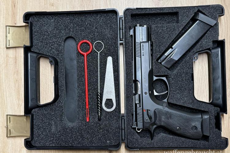 Diese 6 Zoll Longslide-Pistole ist im Gegensatz zur Waffen-Oschatz CZ Sport II auf der Basis eines CZ 75 SP01 Shadow Griffstück aufgebaut. Das längere Dustcover mit Picatinny-Schiene verbessert nochmals die Gewichtsverteilung. Der feinst- überarbeitete und abgestimmte Matchabzug verfügt über einen einstellbaren Triggerstop und "bricht" wie Glas.