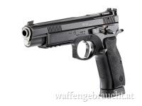 Diese 6 Zoll Longslide-Pistole ist im Gegensatz zur Waffen-Oschatz CZ Sport II auf der Basis eines CZ 75 SP01 Shadow Griffstück aufgebaut. Das längere Dustcover mit Picatinny-Schiene verbessert nochmals die Gewichtsverteilung. Der feinst- überarbeitete und abgestimmte Matchabzug verfügt über einen einstellbaren Triggerstop und "bricht" wie Glas.