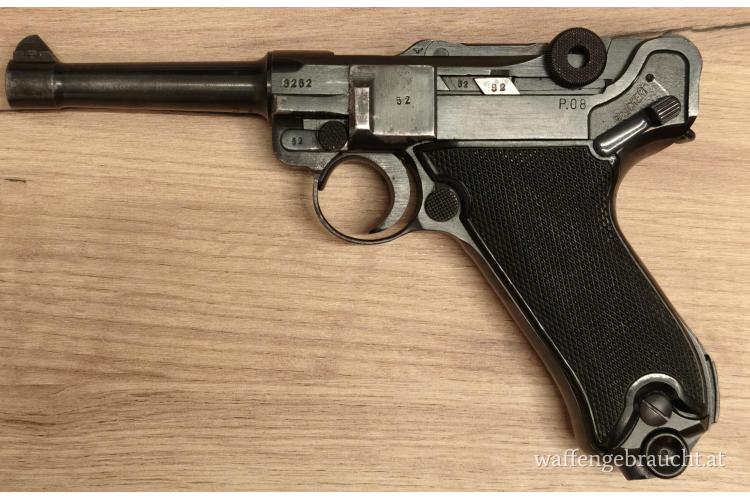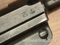 P08 mit makellosen schwarzen Bakelit-Griffschalen, Hersteller Mauser, Produktionsjahr 1941 (byf41 gemarkt), absolut nummerngleich, keine Fremdstempel, kein Neubeschuss, originales Finish! Abnahme WaA655, ausgegeben an das Heer (Wehrmacht).