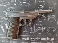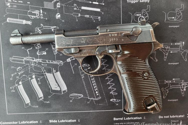 Kaliber der P 38 der Wehrmacht ist das Kaliber 9mm Luger. Die Pistole ist augenscheinlich nummerngleich. Die Pistole hat einen deutschen Neubeschuss. Die Waffe war wie alle meine anderen auch gefettet und das Fett habe ich nur mal grob mit einem Tuch abgewischt. Ich habe mit der Pistole nicht geschossen.