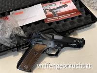 Halbautomatische Pistole mit geometrischem kurzem Lauf. Die hochwertigen Materialien (aus dem vollen herausgearbeitet) und die einmalige Fertigungsqualität machen diese Waffen zu absoluten Wettkampfwaffe. Der Rahmen ist aus einer besonders leichten Aluminiumlegierung hergestellt. Lauf, Schlitten und Bedienteile aus Spezialstahl. Der besondere Winkel des Griffes gibt diesen Pistolen ein einmaliges Schußverhalten. Durch den einstellbaren Singel-action Abzugsmechanisums und die Verstellmöglichkeiten der Visierung ist die GT Serie von Pardini eine absolute Präzisions und Sportwaffe. Bei allen Pistolen ist eine gute Munitionsverträglichkeit mit allen Munitionssorten Namhafter Hersteller gewährleistet. Das Magazin kann mit beiden Händen durch ein Magazinhaltekopf entnommen werden. Finish: Alle Stahlteile sind gehärtet und verchromt oder brüniert. Alle Aluminiumteile sind eloxiert. Abzugs - und Visier-Einstellung sowie die Realisation gemäß dem Standard von Wettkampf- Waffen sind für diese Pistolenserie eine Garantie für unübertreffliche Präzision.