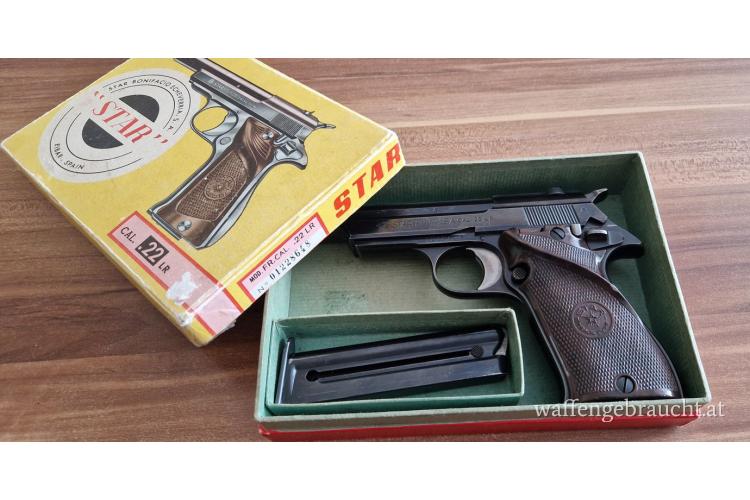 Pistole STAR Mod. FR im Kaliber .22 lr, guter Zustand, im nummerngleichen Originalkarton.