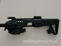 Fast neu, war nur einmal in Verwendung. Beide Daumenauflagen vorhanden (links und rechts). Inklusive Flip-Up. Geeignet für Glock 17 und 19 Gen 4 und 5.