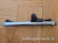 Verkaufe mein Ruger Mark 4 Target Stainless Wechselsystem mit Mündungsgewinde in neuwertigem Zustand, da ich es zu wenig nutze. Montageplatte ist dabei, Rotpunkt ist nicht Teil der Verkaufs.