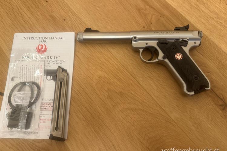 Zum Verkauf steht eine RUGER MARK IV TARGET in Stainless Steel. Ca. 100 Schuss geschossen.