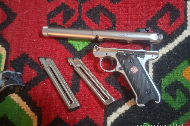 Beliebte Matchpistole im Kaliber .22 LR mit schwerem Target-Lauf, hervorragender Balance und sauberem Abzug. Einfache Zerlegung dank Mark-IV-System, ideal für Training und präzises Sportschießen.