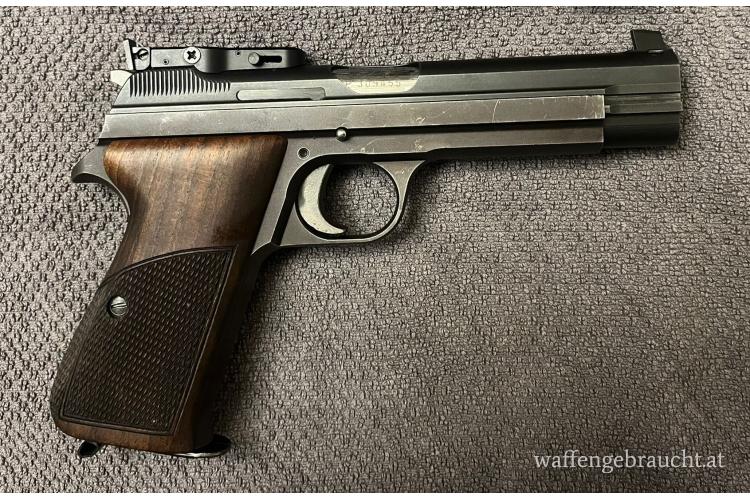 Biete nummerngleiche P210-6 Pistole mit 3-Positionen Präzisionsvisierung für unterschiedliche Distanzen (z.B. 10m, 25m, 50m) und trigger overtravel stop. Ein beavertail (nicht abgebildet), der den sogenannten hammer bite verhindert ist ebenfalls Teil des Angebotes;