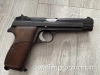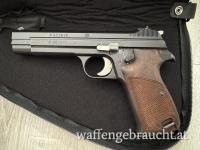 Verkaufe meine sig P210 in 9x19. Was ich auf Grund der Seriennummer die mit P anfängt herausgefunden habe ist das es sich um eine Schweizer Fertigung handelt und das Baujahr ist zwischen 72 und 75. sie ist in einem sehr guten Zustand, da wackelt nichts da scheppert nichts, der Abzug ist wirklich sehr gut, die Visierung ist sehr fein und sie schießt sehr präzise.
