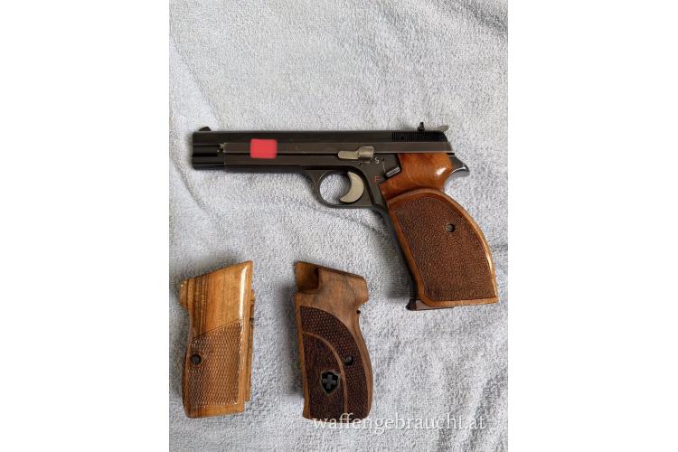 Verkaufe eine SIG P210 Bj.77. Sie ist aus Schweizer Fertigung und wurde für den Deutschen Bundesgrenzschutz gefertigt. Dabei sind ein Wechsel lauf von der Fa. IGB in 9mm, ein Wechsellauf in Kal. 7,65mm ebenfalls von IGB inkl. Magazin, ein KK-Wechselsystem von der Fa. Hämmerli eingeschliffen auf das Griffstück, inkl. Magazin. Der Abzug ist überarbeitet. Die Magazine sind verlängert damit sie bei den Nill- Griffen bündig abschließen. Griffschalen von Karl Nill und ein zweiter Satz Zubehörgriffschalen sind auch dabei.