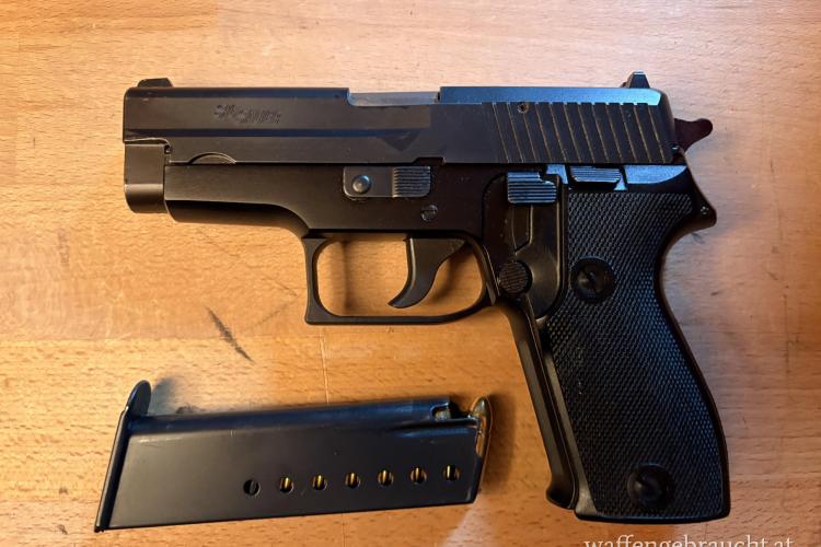 Verkaufe hier eine Sig P225. Sie stammt aus Familienbesitz und wird auf Grund einer Haushaltsauflösung abgegeben. Die Waffe ist tadellos in Ordnung und hat vielleicht 300 Schuss durch. Sie war in gewisser Maßen ein Safehüter von meinem Opa. Die P225 fährt mit einem