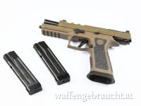 Drei Stück 17rd Magazine liegen bei und die Waffe ist komplett in Cerakote "Coyote Tan" beschichtet.