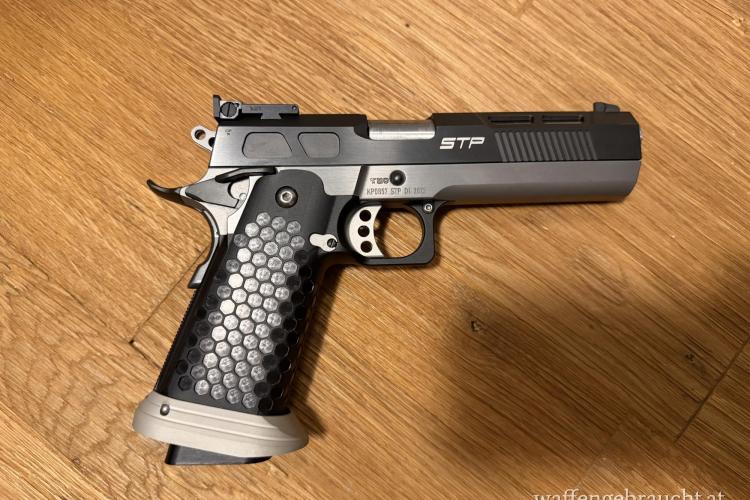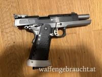 Kaliber: 9×19 Griff: Alu-Griff schwarz mit Hexagon-Wabenstruktur Lauf: 5.0 bull Visierung: Bomar-Visierung verstellbar, Targetkorn Abzug: Matchabzug, verstellbarer Triggerstop Magazinkapazität: 9×19: 17 Schuss,