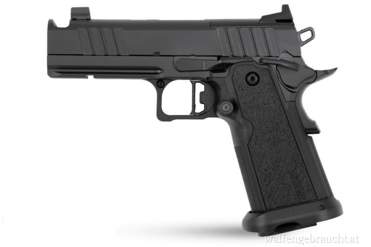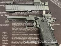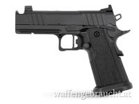 Vollstahl Waffe mit eingebautem Kompensator für extrem ruhiges Schussverhalten.
