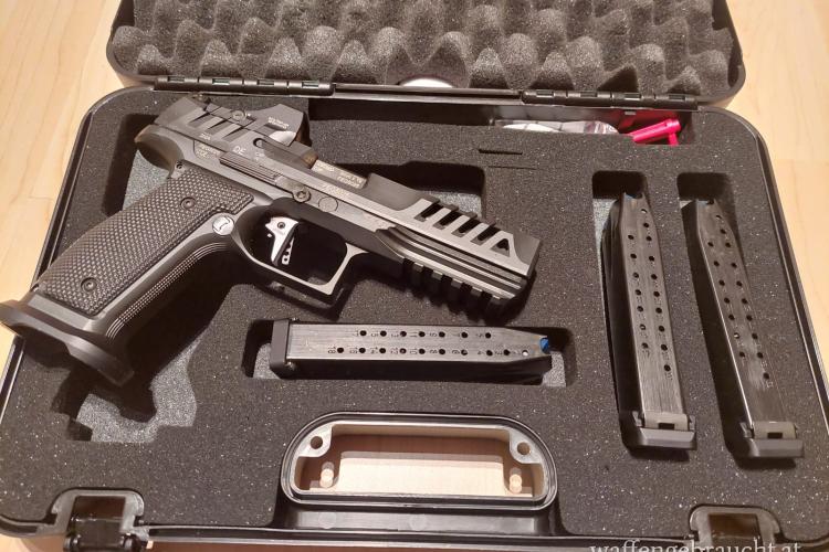 Sie ist in einem absolut Neuwertigen Zustand keine Kratzer oder Beschädigungen dazu ein Holosun was direkt ohne Montageplatte angebracht ist somit sehr tiefer Punkt und dadurch kann man auch Kimme und Korn nutzen.