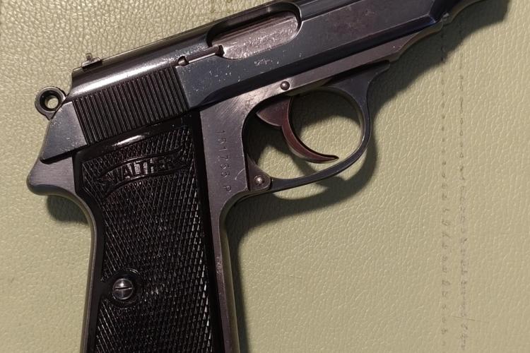 Zustand: gebraucht - technisch voll funktionsfähig, schwarze Bakelitschalen mit Waltherschleife und Fischhaut, 6-stellige Nummer mit "P" rechts am Griffstück.