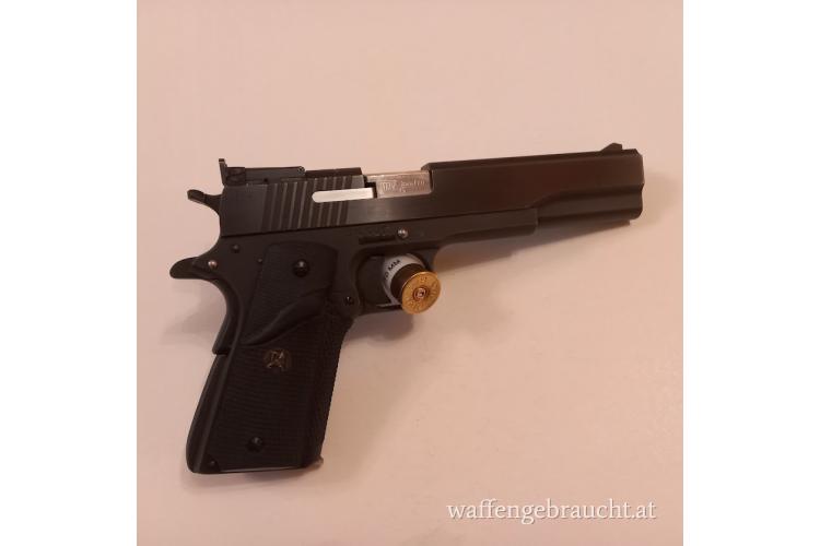 Ich verkaufe eine gut erhaltene halbautomatische Pistole von Peter Stahl, Kaliber 9 mm, Lauflänge 150 mm.