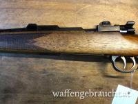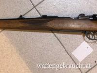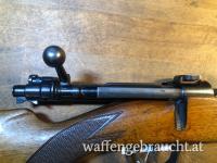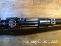 guter Gesamtzustand, Lauf ist aber nicht mehr blank, Züge und Felder sind noch gut sichtbar, schöner Schaft, 98er System, 5 Schuss Magazin, Flügelsicherung, Deutscher Stecher, Gesamtlänge 113 cm, Lauflänge 62,5 cm, vorderer Abzug bis Schaftende 37 cm, Klappkimme, SEM Montage