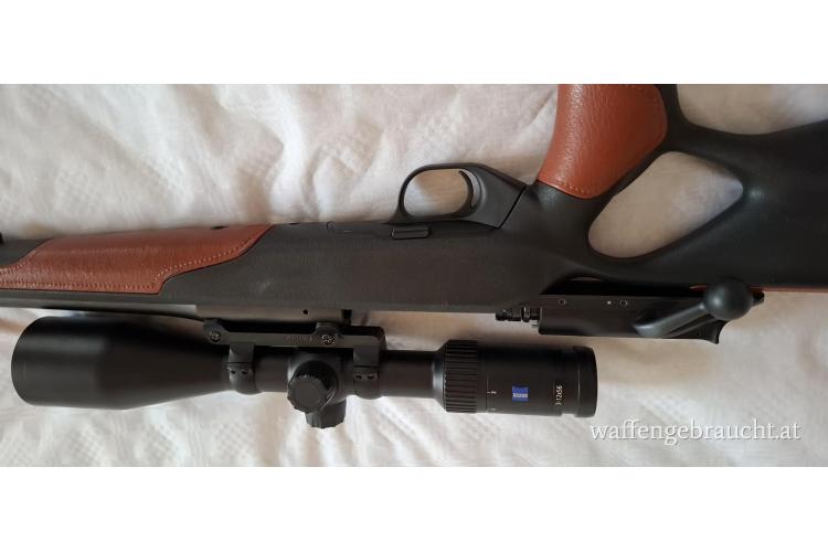 Mit dabei ist eine Zielvorrichtung montiert ein Zeiss Conquest V4 3-12x56 auf einer Blaser Sattelmontage. Das Zielfernrohr ist wie auf den Fotos zusehen in einem Tadellosem Zustand .
