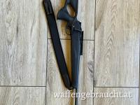 Schalldämpfer und Gewehrriemen sind im Angebot enthalten.
