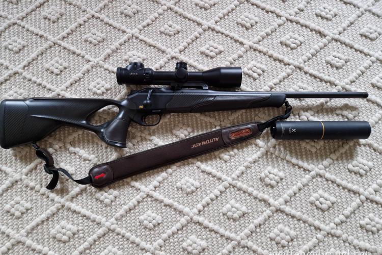 Wunderschöne Blaser R8 Ultimate Carbon Leder ohne Gebrauchsspuren, und mit top Schussleistung inklusive Optik Leica, sowie Schalldämpfer Hausken und Automatik Riemen wie abgebildet