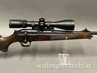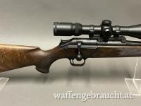 Blaser R93 Luxus im Kaliber 25-06. Lauflänge 58 cm. Optik Bauer 2,5-10x50 mit Leuchtabsehen montiert über eine Blaser Sattelmontage. Sehr gute Schussleistung.