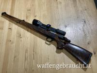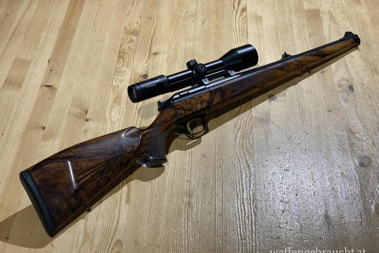 Sehr schöne Blaser R93 Attaché in LINKS-Ausführung mit Achtkantlauf und schönem Wurzelholz. Dem Alter entsprechende Gebrauchsspuren am Holz aber in sehr gutem Zustand.