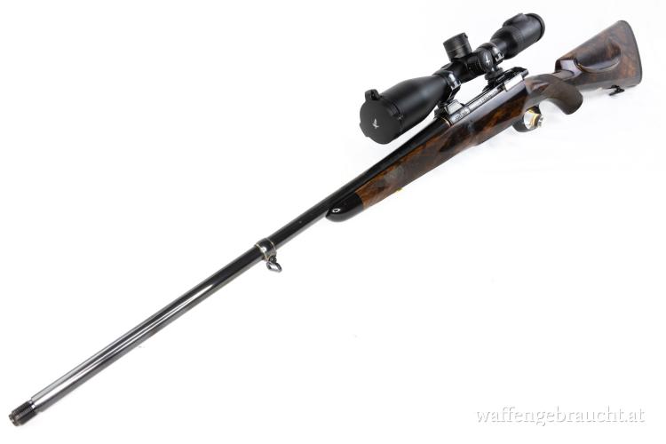 Diese BOROVNIK Luxus-Repetierbüchse basiert auf dem bewährten Mauser 98-System, wurde jedoch in der Manufaktur Borovnik auf höchste jagdliche Anforderungen veredelt: Ein fein gemaserter Nussholzschaft mit edlem Ölfinish, klassischer Doppelfalz-Schaftbacke, ausgeprägter Fischhaut und feinem Pistolengriff unterstreichen den Premium-Charakter. Technisch überzeugt die Waffe mit einem leichtgängigen Schlossgang, präzisem Direktabzug und einem Mündungsgewinde M14x1 für die Nutzung moderner Schalldämpfer. Die Krönung bildet das montierte SWAROVSKI Z8i 2–16x50 P L, mit beleuchtetem Absehen 4A-I und BTF-Ballistikturm, das höchste optische Leistung mit maximaler Flexibilität für weite Schüsse verbindet. Das Gesamtpaket befindet sich in einem sehr guten gebrauchten Zustand und ist ideal für ein exklusives Jagderlebnis.