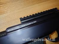 Montiert ist eine Picatinny Schiene von UTG 11mm Prisma auf Picatinny) und ein UTG Recon 360 Zweibein aus Aluminium. Im Original Koffer.