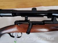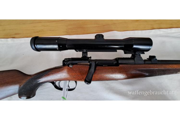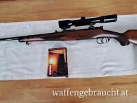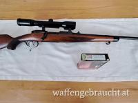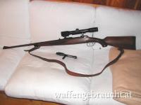 Auf der Waffe ist ein Hensoldt mit 1,5x6fach variabler Vergrößerung montiert. Das ZF war Ende der 60-Jahre das Beste, was es für Druckjagd und Revierjagdansprüche gab. Das Modell mit der Aufschrift „Hensoldt Wetzlar“ und ohne Zeiss-Zusatz stammt aus der Zeit zwischen ca. 1965 und 1974. Danach wurde die Fertigung zunehmend unter dem Namen Carl Zeiss – Hensoldt Diavari weitergeführt. Das Exemplar besitzt noch das klassische Stahlrohr, das für die frühen Diavari typisch war. Mit dem 40 mm Objektivdurchmesser, ausgezeichnete Bildhelligkeit für damalige Verhältnisse, sehr präziser Innenmechanik war das variable Hensoldt-Modell das gehobene Allround-Zielfernrohr für Drückjagd bis Ansitz. Die 1,5–6×-Vergrößerung war damals nur bei hohem Geldeinsatz leistbar und eine ideale Kombination für universelle Jagdanwendungen. Ich werde schon wieder traurig wegen des Verkaufs, wenn ich mich wieder in diese Fakten vergrabe. 15 Schuss Norma inkl.