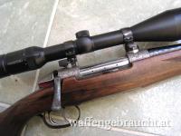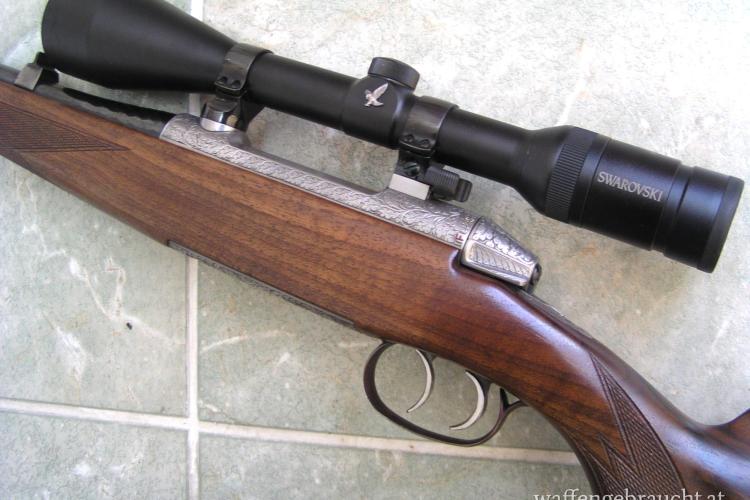 schöner, gravierter Mannicher-Schönauer, Kal. 7 x 64, Steyr-Montage mit Glas Swarovski Habicht 4 - 12 x 50/4, leichte Gebrauchsspuren - mit der Waffe wurde gejagt.