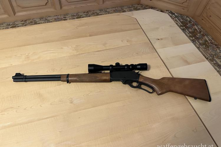 Hier wird ein kaum benutzter Unterhebelrepetierer der Marke Marlin im Kaliber 30-30 angeboten, Die Waffe hat nur 20 Schuss geschossen.