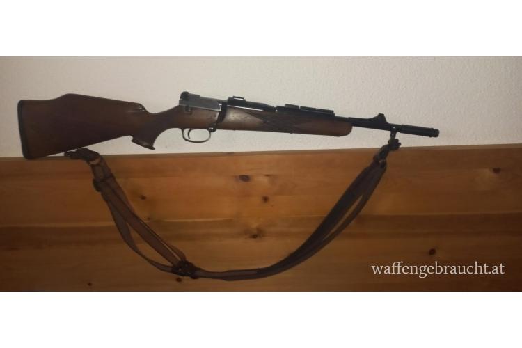 Mauser 66s Kurzrepetierer mit Mündungsgewinde und Atec alock mini Schalldämpfer-Adapter. Eine genau passende ERA Schwenkmontage für verschiedene Zielfernrohre mit der modernen Innenschiene (für Zeiss, Leica, Meopta, DD, Steiner,  Minox) ist dabei. Magazin wie bei Blaser r8 über demAbzug angeordnet,  daher bei 42 cm Lauflänge nur 89 cm Gesamtlänge! Zusätzliche Picatinnyschiene zur Montage eines Reddots wurde ähnlich einer Scout Montage angebracht. Ideal für Drückjagd und Nachsuche. Das abgebildete Aimpoint Acro c-2 wird separat angeboten und ist nicht Verkaufsgegenstand! Spartan Zweibein Adapter ist ebenfalls verbaut.