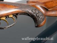 Der handgefertigte Mauser 98 Repetierer im Kaliber 8x68S stellt eine perfekte Symbiose aus traditioneller Handwerkskunst und moderner Jagdtechnik dar. Mit einer Lauflänge von 65 cm und einem komplett gravierten System, das mit einer Eichenlaubgravur verziert ist, ist dieser Repetierer nicht nur ein funktionelles Werkzeug, sondern auch ein wahres Kunstwerk. Der Magazindeckel mit Rothirsch- und Eichenlaubgravur sowie der Abzugsbügel mit einem durchbrochenen Rehbock-Motiv runden das edle Design dieses Jagdgewehrs ab.