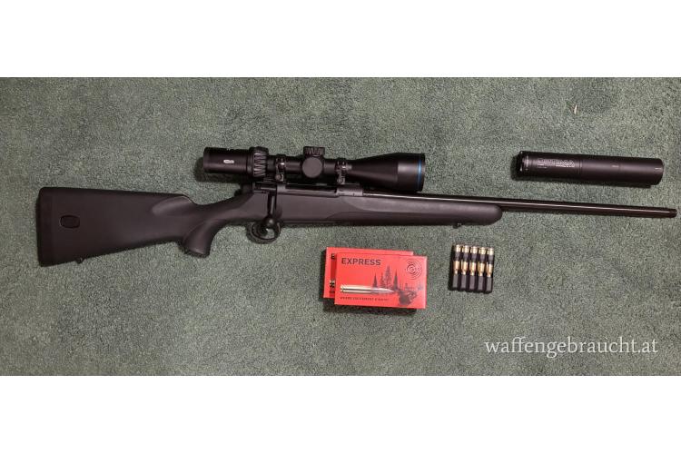 Verkaufe eine Mauser M18 mit Meopta Glas (3-18x56) und A-Lock Optima Schalldämpfer incl. Schnelladapter + Niggeloh Gurt und Restmunition im Kaliber 308Win.
